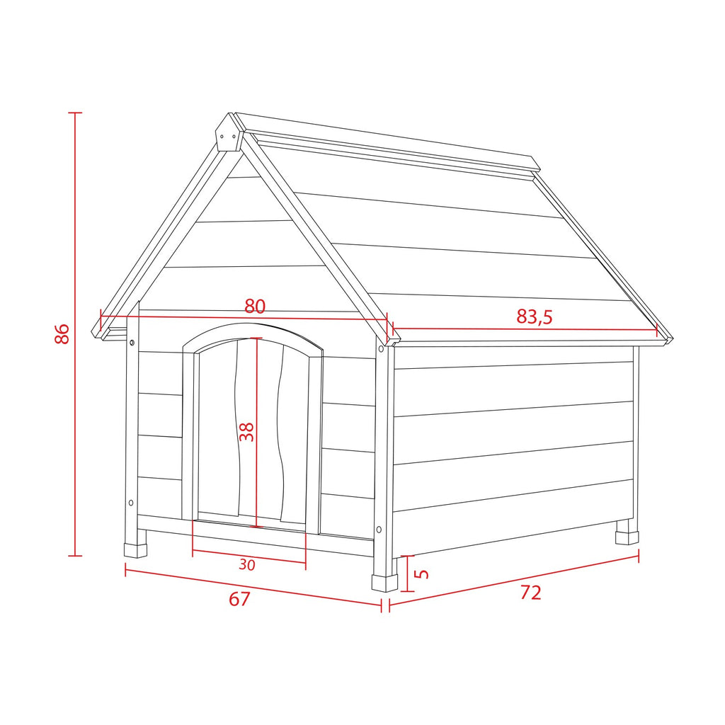 La cuccia è interamente fatta di legno di Pino, il tetto spiovente è realizzato con materiali impermeabili e isolanti! Il tetto e il fondo, a doghe in legno, sono removibili per rendere piacevoli e veloci le operazioni di pulizia.