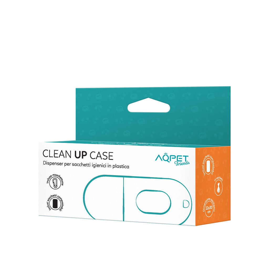 Clean Up case è un comodo dispenser con tappo a vite realizzato con materiali di prima qualità e alta resistenza. Il moschettone in dotazione permette di agganciarlo con semplicità al vostro guinzaglio.