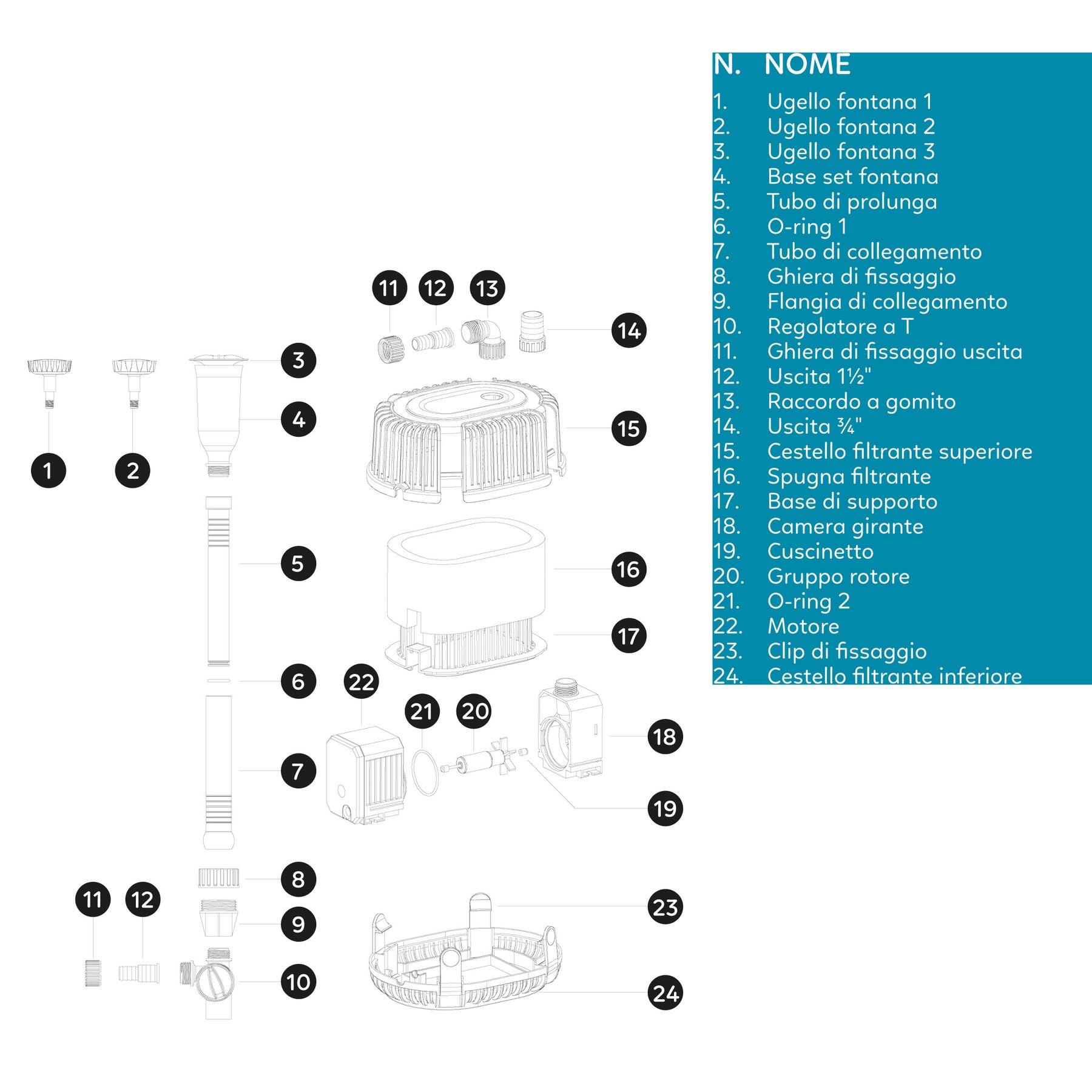 Sistema completo: pompa + filtro + fontana