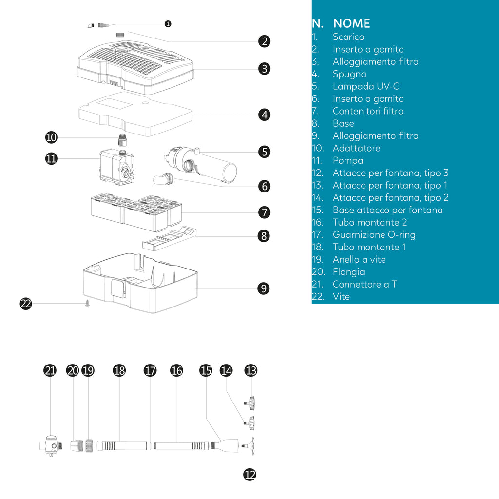 Sistema completo: pompa + filtro + UV-C